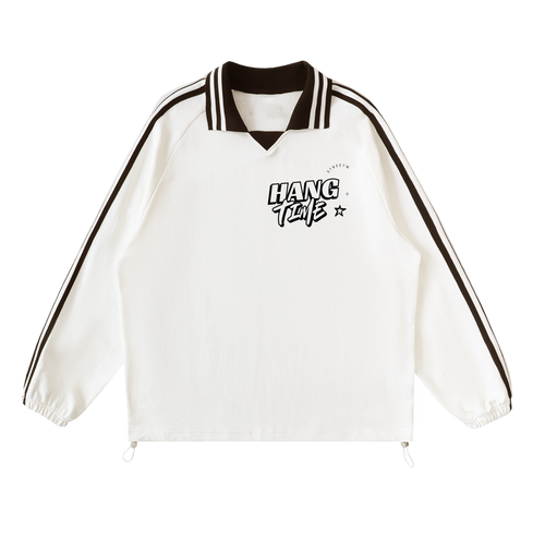 Contrast Striped Lapel Collar Sweatshirt
